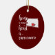 of the state and a red heart. Set on deep Christmas red. Personalise one side with