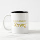 Prominently displayed on the front of the mug is the bold, stylish typography spelling out "South Dakota Strong" in striking golden letters. The use of gold accents adds a touch of luxury and prestige, elevating the mug's visual appeal and making a powerful statement. The choice of font reflects modern design sensibilities, with sleek sans-serif characters that convey a sense of strength and resilience.