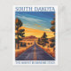 South Dakota the Mount Rushmore State USA Travel Place Art Vintage Illustration