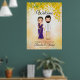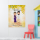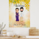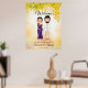 South Indian wedding Tamil Telugu Indian couple welcome sign. Warm colours with cute Indian couple illustration and yellow hanging flowers.