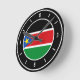 South Sudan Flag Elegant Round Clock with the South Sudan flag positioned in the middle and lovely white clock numbers on the clock edge. Delightful black background with the white oval elements finalize the design putting emphasis on the elegance. Beautiful combination of black and white with the skillful integration of the national flag colors make this clock the perfect gift and the great show piece on the wall. © CountriesOfTheWorld