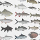 Row 5: Amur Carp, Hampala Barb,Giant Freshwater Stingray, Bull Shark, Marble Goby