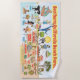 Bright and colourful scene offers a spectacular view of Southern California - wacky characters frolic on the beach and desert of SoCal showcasing Los Angeles, Orange County, San Diego, Santa Barbara, Riverside, Palm Springs, El Centro, Salton Sea, Anza Borrego and Joshua Tree parks as well as the border cities of Tijuana, Tecate and Mexicali. This charming scene has it all – a surfer hangs ten while a killer whale leaps out of the water, zoo animals greet the tourists, wine lovers make a toast as a hiker is noticed by a UFO and much more…