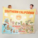 Bright and charming cartoon blanket offers a whimsical view of Southern California - cute characters enjoy the warm California sun showcasing Los Angeles, San Diego, Riverside, Palm Springs, Anaheim and Long Beach, Anza Borrego and Joshua Tree parks as well as the border cities of Tijuana, Tecate and Mexicali.