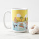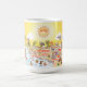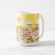 Bright and detailed whimsical cartoon of Southern California - featuring Los Angeles, Anaheim, Long Beach, San Diego and other major cities plus most beach towns - zany characters play on the beach and desert, mountains and valleys. This charming scene has it all – a surfer hangs ten while a mermaid lounges on a rock, a killer whale leaps out of the water as a t-rex roars a challenge, a muscular beach couple both flex to impress, zoo animals wait for tourists and a bull smashes into a bull fighter…