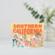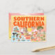 Bright and colourful scene offers a spectacular view of Southern California - wacky characters frolic on the beach and desert of SoCal showcasing Los Angeles, Orange County, San Diego, Santa Barbara, Riverside, Palm Springs, Anza Borrego and Joshua Tree parks as well as the border cities of Tijuana, Tecate and Mexicali. This charming scene has it all – a surfer hangs ten while a killer whale leaps, zoo animals greet the tourists and much more…
