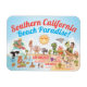This Cali scene has it all – a surfer hangs ten while a mermaid lounges on a rock, a killer whale leaps out of the water, a muscular beach couple both flex to impress as a T-Rex roars a challenge and much more…