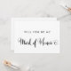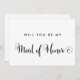 This southern calligraphy will you be my maid of honour card is perfect for a modern wedding. The minimalist design features rustic yet elegant black and white typography with whimsical flourishes for a simple look. Customise the card with the name of the bride and the maid of honour. Personalise the back of the card with a personalised message.