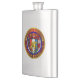 The product is a good size and came exactly as it was pictured. The lid is not attached to the flask, which could be dangerous on drunken nights... The print came out surprisingly well and looks very sharp. Would definitely recommend.