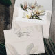 Decorated linen envelopes with southern magnolia flowers design. A name and return address can be added to the back flap on invitation size (A7) or any other size envelopes. The magnolia design covers the outside, and is also printed under the flap. Use to mail wedding, shower or any event invitations.