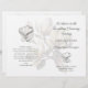 Folded wedding program template with magnolia flowers background. Entwined hearts decorate the front, beneath the names, and on the last page above the "thank you" message to guests. The southern magnolia is a big, white flower and this design is perfect for any couple marrying in the south.