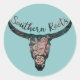 Southern Roots Country Longhorn Pink Rose & Green Classic Round Sticker