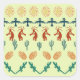 This repeat patterned artwork has beautiful desert landscape earth tone inspired colors of Cinnabar Red, Traffic Red, Saffron Gold, Blue Whale, Tia Maria Burnt Orange, Medium Teal Green, Golden Brown Tan and Pine Green with a Light Canary Yellow colored background.
