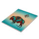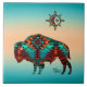 Brighten Your Home with this Unique "One of a Kind "Southwest Buffalo and Sun Ceramic Tile! It Features a Southwest Buffalo and Sun on a Turquoise and Orange Sunset Background!