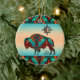 Personalise this "One of a Kind" Southwest Buffalo Christmas Ornament! It Features a Southwest Buffalo and Sun on a Turquoise and Orange Sunset Background...Surrounded by Turquoise, Orange and Black Borders!