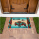 Personalise this Unique "One of a Kind" Southwest Buffalo Doormat! It Features a Southwest Southwest Buffalo on a Turquoise and Orange Sunset Background...Surrounded by a Southwest Border in Turquoise, Orange and Black!