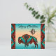 Personalise this "One of a Kind" Southwest Buffalo Christmas Postcard! It Features a Southwest Buffalo and Sun on a Turquoise and Orange Sunset Background...Surrounded by a Turquoise, Orange and Black Border!