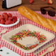 This design features a colourful chile pepper wreath tied with a raffia bow on an adobe wall background. The original painting was inspired by the chile ristras and wreaths the artist hung outside her home in the Southwest. Ristras are a symbol of welcome said to bring good health and good luck.
