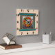 This design features a colourful chile pepper wreath tied with a raffia bow on a rustic wooden window in an old adobe house. This clock has a basic style of numbers on the face. The original painting was inspired by the chile ristras and wreaths the artist hung at her home in New Mexico. Ristras are a symbol of welcome said to bring good health and good luck.