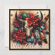 Southwest Cow Skull Poinsettias Desertcore Holiday Card