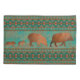 An oxidised verdigris copper patina coloured background in teals and turquoise with cute aged copper coloured javelina silhouettes, bordered by geometric patterns inspired by the colours, designs and collared peccarys living near the artist's home in the southwest. Also available in king size pillow cases