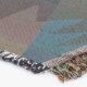 A quality printed throw has its advantages. This is a much finer weave throw than its loopier cousins, and though lighter, it is worth the investment for custom room accessorizing. The back is much prettier than the typical brown, and the fringe on the long sides very vivid, the selvage nicely done. Before photographing, I washed the throw in cold water, delicate, with a thicker woven throw the same size. On tumble dry low, this throw was dry in half the time as the other. This is a very practical quality if you use throws for furniture covers or to wrap up in frequently. The sleekness of the fabric makes it a great layer for accenting or protecting without the feeling of sitting on too much stuff. Perfect for napping or when you feel a light chill coming on. The color printing is beautiful and on this fabric, matched the design and color of my Photoshop image. This is an advantage for blending room fabrics and colors. The fringe on the short sides prints the colors from the design image and therefore varies from the side fringe. I streaked a white fractal line through the plaid pattern to give the illusion of weaving. This printed as crisp as an illusory thread, and put some white in the short side fringe, showing another advantage of print vs loomed- for artistic purposes, line lines, detail, and color integrity can be planned and preserved. My loomed throws have color limitations and more of a needlepoint texture. Print throws reproduce an exact image. The throw felt a little stiff straight out of the package, but this went away in the first delicate wash. Of course I searched the wash water for ink or bleeding and there was none.