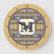 Southwest Design Gold Blue Grey Tribal Pattern Large Clock
