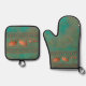 Southwest Fun Javelina Family Copper Teal Oven Mitt & Pot Holder Set