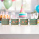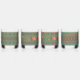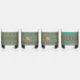 A set of whiskey glasses featuring coordinating southwest style designs of geometric borders in coppers, teals and turquoise and a fun javelina family, inspired by the colours, patterns and collard peccarys of the artist's home in the desert southwest.