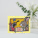 This cute souvenir postcard reads, "Hi!" on a rustic banner and features two of the southwest desert's most popular creatures, a Gambel's quail and a cottontail bunny rabbit, both wearing colourful bandanas. A little blue butterfly sends its greetings, too! The background is sunny yellow. The reverse has a smaller copy of the artwork, with plenty of room for a handwritten note. Perfect for anyone, any age, who loves southwest style! Whimsical, unique acrylic artwork and design by Tuzi Williams.