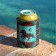 Keep Your Favourite Beverage Cool in this "One of a Kind" Southwest Horse Can Cooler! It Features a Galloping Southwest Horse Silhouette and Sun on a Turquoise Background...Surrounded by a Southwest Border in Turquoise, Orange & Black!
