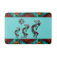 Decorate Your Bathroom with this Unique "One of a Kind" Southwest Kokopelli Bath Mat! It Features Three Kokopelli Playing the Flute Under the Sun on a Turquoise Background with a Southwest Border in Turquoise, Orange & Black!