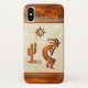 This is a Unique "One of a Kind" Southwest Kokopelli Cell iPhone Case! It Features a Copper Southwest Kokopelli Playing the Flute and Dancing Around a Cactus Under the Sun...on a Sandstone Background...Surrounded by a Copper Border!!