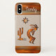 This is a Unique "One of a Kind" Southwest Kokopelli Cell iPhone Case! It Features a Copper Southwest Kokopelli Playing the Flute and Dancing Around a Cactus Under the Sun...on a Tan Background...Surrounded by a Copper Border!!