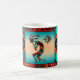 This is a Unique "One of a Kind" Southwest Kokopelli Coffee Mug! It Features a Southwest Kokopelli Playing the Flute and Dancing Under the Sun on a Turquoise and Orange Sunset Background...Surrounded by a Southwest Border in Turquoise, Orange & Black!
