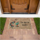 Personalise this Unique "One of a Kind" Southwest Kokopelli Doormat! It Features a Southwest Kokopelli in Turquoise, Orange and Black Playing the Flute and Dancing Around a Cactus Under the Sun...on a Brown Leather Background!