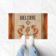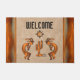 Personalise this Unique "One of a Kind" Southwest Kokopelli Doormat! It Features a Two Copper Kokopelli Playing the Flute and Dancing Around a Cactus Under the Sun on a Tan Background...Surrounded by a Copper Border!