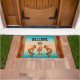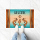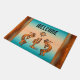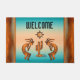 Personalise this Unique "One of a Kind" Southwest Kokopelli Doormat! It Features a Two Copper Kokopelli Playing the Flute and Dancing Around a Cactus Under the Sun on a Turquoise and Orange Sunset Background...Surrounded by a Copper Border!