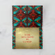 Personalise this "One of a Kind" Southwest Christmas Greeting Card! It Features a Southwest Kokopelli Playing the Flute with Music Notes on a Gold Christmas Background, Surrounded by Turquoise, Orange and Black Borders and the Uplifting Words..."Peace On Earth"!