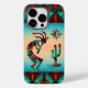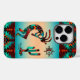 This is a Unique "One of a Kind" Southwest Kokopelli Cell Phone Case! It features a Southwest Kokopelli Playing the Flute and Dancing Around a Cactus Under the Sun, on a Turquoise and Orange Sunset Background...Surrounded by a Turquoise, Orange and Black Border!