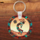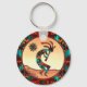 This is a Unique "One of a Kind" Southwest Kokopelli Keychain!  It Features a Southwest Kokopelli Playing the Flute and Dancing Under the Sun in the Desert...Surrounded by a Southwest Border in Turquoise, Orange and Black!