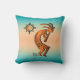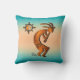 Brighten Up Your Home with Unique "One of a Kind" Southwest Kokopelli Throw Pillow! It Features a Copper Southwest Kokopelli Playing the Flute and Dancing Under the Sun on a Turquoise and Orange Sunset Background!