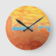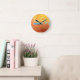 The clock did not take as long to arrive as I thought it might and was extremely well packaged. I didn't do the measurements so I didn't realize it is a little smaller than the average clock but that does not matter (just make sure you check if that's important to you).It is really nifty! It seems very solid and well made not flimsy at all. It has been going well and has kept good time in its few weeks on my wall. Nice product. Gets noticed too! Nicer in real life than the picture but true to the picture