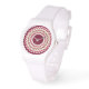 Bright circular chevron patterns encircle one another in this unique and colourful watch. Colours include maroon red, tan and white, with the centre being solid burgundy red. This pattern has a festive southwestern style.
