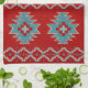 An original design in a bold red and turquoise geometric pattern created by Artellus. The artist was inspired by the colours and patterns around her home in the desert southwest.