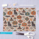 A vibrant Southwestern-inspired Halloween repeating pattern that blends traditional spooky icons with bold desert geometry. Black cats, bats, crescent moons, witches’ hats, spiders, and spiderwebs mingle with richly patterned pumpkins and striking Navajo-style motifs in warm clay orange, turquoise, teal, and deep charcoal. Set against a soft parchment-toned background, the design feels festive, graphic, and culturally inspired rather than spooky. The rhythmic layout and earthy color palette give the pattern a cozy desert-night atmosphere.