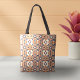 This is a design weaves teal, turquoise, navy, orange, and brown into an attractive modern and traditional, tribal vibe.