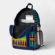 Inspired by the beautiful sunset skies and tall Ponderosa Pines of Arizona, this original artwork features a glowing orange, yellow and blue sunset sky behind geometic ponderosa trees and stars in a saddle blanket style pattern. The front pocket features a matching scene with a crescent moon.