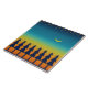 Inspired by the beautiful sunset skies and tall Ponderosa Pines of Arizona, this original artwork features a glowing orange, yellow and blue sunset sky behind geometic ponderosa trees with stars and a crescent moon.