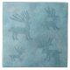 Inspired by the rocks, design elements and petroglyphs distinctive to the artist's surroundings in the southwest, this original artwork features a turquoise and silver grey background with geometric snowflakes, pine tree borders and deer drawings based on actual petroglyphs found in Arizona and Utah.